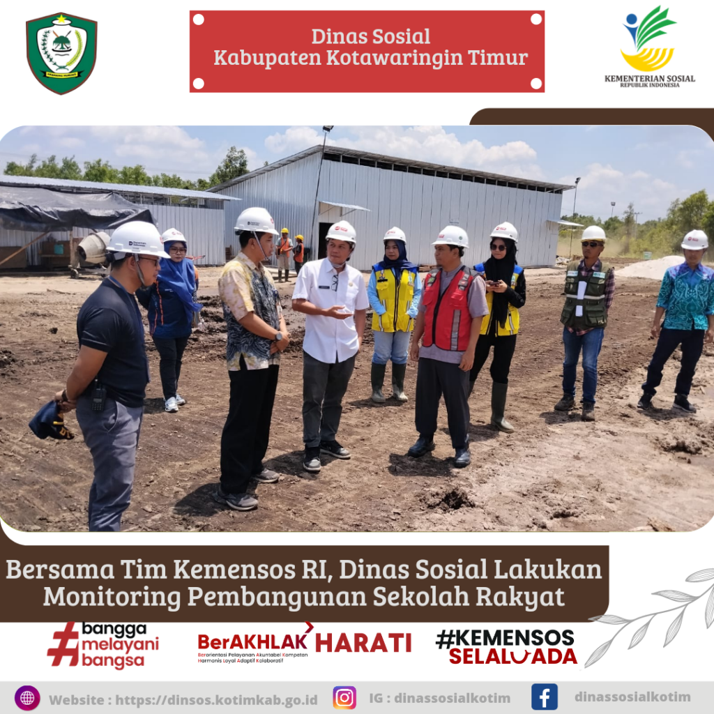 Sampit- Dinas Sosial Kabupaten Kotawaringin Timur melalui Bidang Perlindungan dan Jaminan Sosial melaksanakan kegiatan monitoring Pembangunan Sekolah Rakyat Terintegrasi 55 KOTIM bersama Tim dari Kementerian Sosial Republik Indonesia yang berlokasi di Kelurahan Baamang Tengah Kecamatan Baamang, Jum’at (13/03/2026).