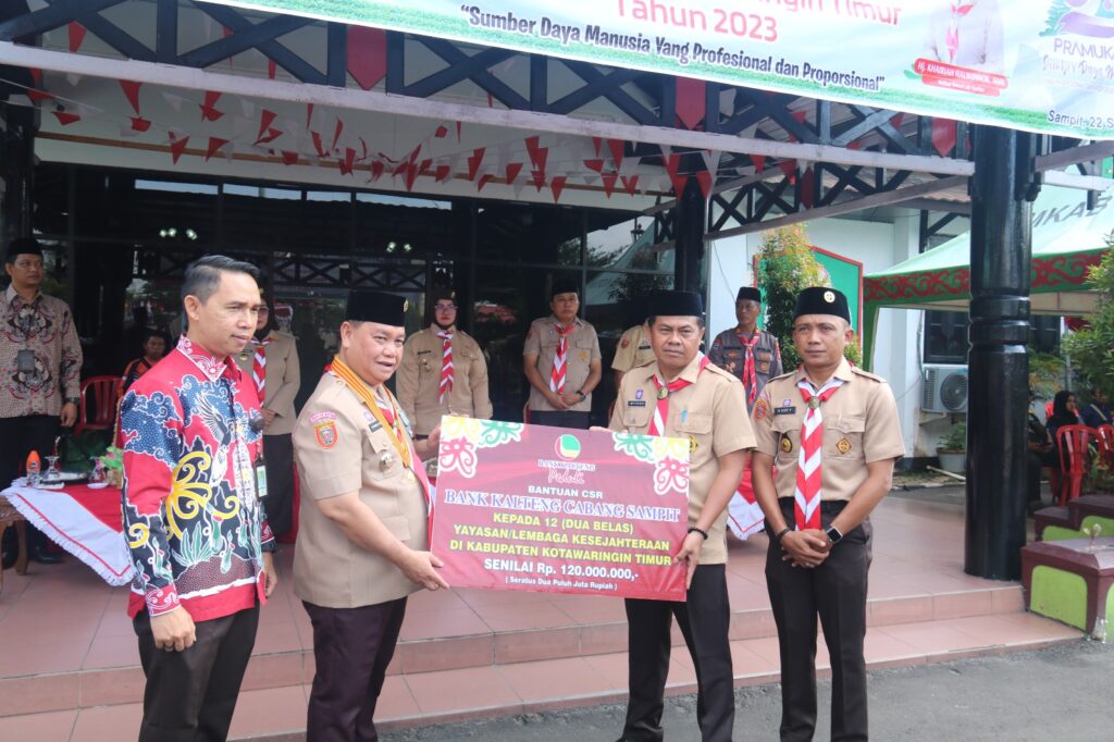 Pada kesempatan itu, Halikin yang juga didampingi Ketua Kwarcab Pramuka Kotim, Khairiah Halikinnor, Wakil Bupati Kotim Irawati, beserta Ketua DPRD Kotim Rinie menyerahkan secara simbolis bantuan CSR dari Bank Kalteng Cabang sampit kepada 12 yayasan Lembaga kesejahteraan di kab. Kotim serta menyematkan lencana kepada pembina Pramuka yang mendapatkan penganugerahan terhadap baktinya kepada Pramuka.