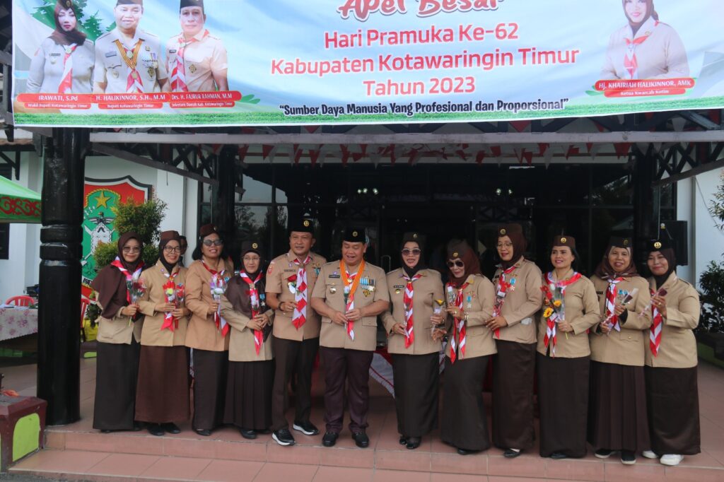 Bupati Kotawaringin Timur (kotim), H. halikinnor,SH.,MM bentindak selaku pembina upacara pada Upacara Peringatan Hari Pramuka Ke-62 se- Kabupaten Kotawaringin Timur (kab. kotim) Tahun 2023, bertempat di Halaman Kantor Pemda Kab. Kotim, Jum,at (22/9/2023)