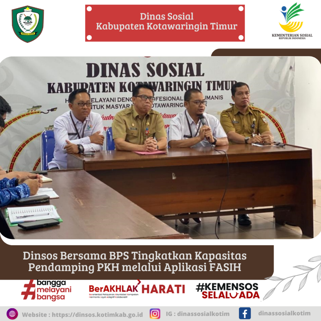 Sampit- Dinas Sosial Kabupaten Kotawaringin Timur bersama Badan Pusat Statistik menyelenggarakan pertemuan terkait sosialisasi aplikasi FASIH (Flexible Authentic Survey Instrument Harmony) kepada pendamping Program Keluarga Harapan (PKH) terkait groundcheck Penerima Bantuan Iuran (PBI), pada Selasa, 31 Maret 2026.