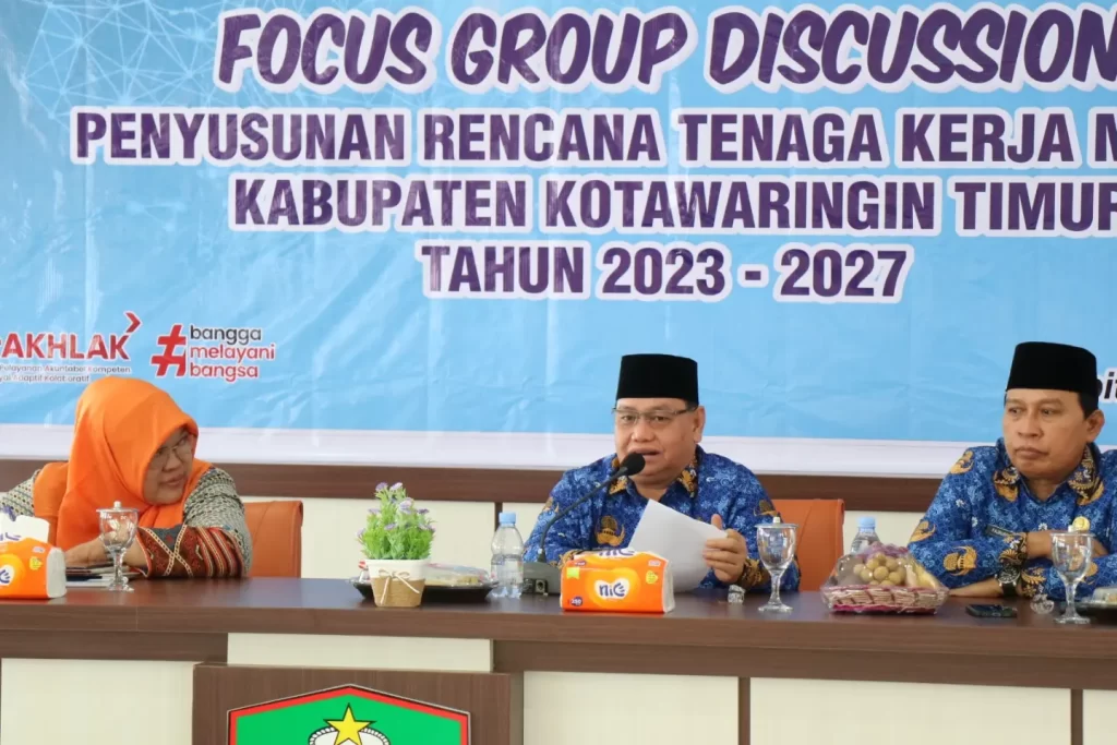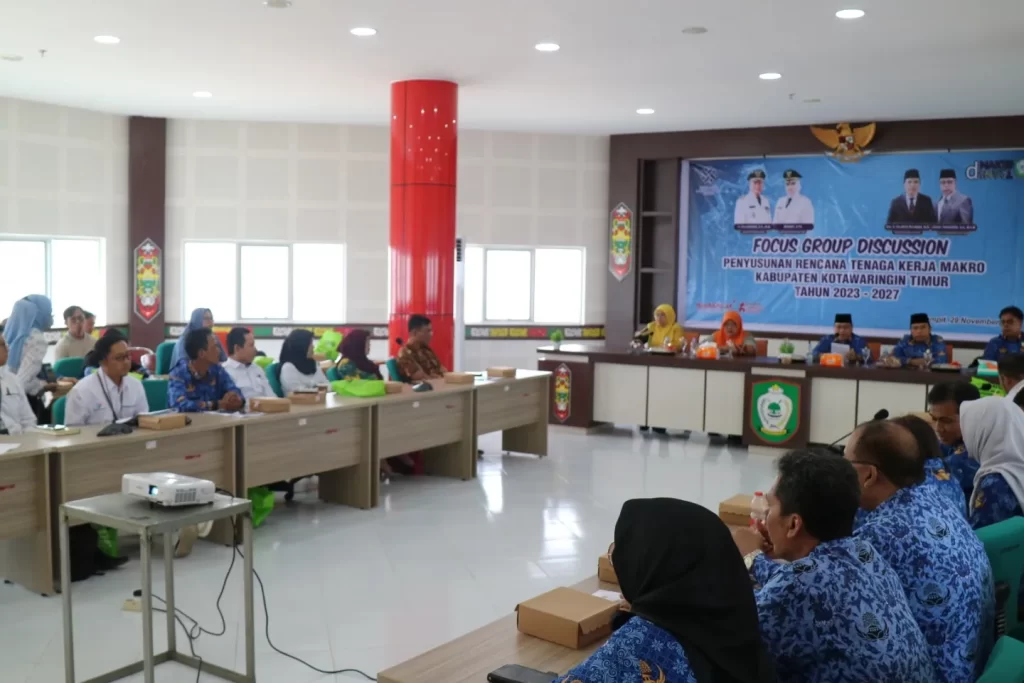 Pemerintah Kabupaten Kotawaringin Timur melalui Disnakertrans Kab.Kotim melaksanakan kegiatan Focus Group Discussion (FGD) Penyusunan Rencana Tenaga Kerja (RTK) Makro Kab.Kotim Tahun 2023-2027 bertempat di Ruang Rapat Mall Pelayanan Publik Lantai 3 DPMPTSP yang dibuka oleh Bupati Kotawaringin Timur H.Halikinnor, SH., MM didampingi Sekretaris Daerah Kab.Kotim H.Fajrurrahman pada Rabu (29/11/2023).