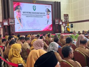 SAMPIT – Pemerintah Kabupaten Kotawaringin Timur menggelar Rapat Evaluasi Akhir Tahun 2025 di Aula Rumah Jabatan Bupati Kotim, Selasa (30/12). Kegiatan ini menjadi forum refleksi kinerja pembangunan sekaligus penajaman arah kebijakan menjelang tahun anggaran 2026. Rapat tersebut dihadiri unsur pimpinan daerah, perangkat daerah, instansi vertikal, perbankan, BUMN, BUMD, dunia usaha,