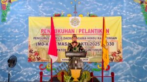 Sampit — Pengurus Majelis Daerah Agama Hindu Kaharingan (MD-AHK) Kabupaten Kotawaringin Timur Masa Bhakti 2025–2030 resmi dikukuhkan oleh Ketua MB-AHK Pusat Palangkaraya, Drs.Wakte S.Penyang, pada hari Minggu (18/01/2026) di Sampit. Peristiwa ini menjadi momentum penting bagi penguatan kelembagaan keagamaan dan pelestarian kearifan lokal di daerah. Bupati Kotawaringin Timur yang diwakili