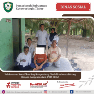 SAMPIT – Dinas Sosial Kabupaten Kotawaringin Timur melalui Bidang Rehabilitasi Sosial telah melaksanakan kegiatan reunifikasi terhadap satu orang Pemerlu Pelayanan Kesejahteraan Sosial (PPKS) dengan kategori Penyandang Disabilitas Mental Orang Dengan Gangguan Jiwa (PDM ODGJ). Kegiatan ini merupakan salah satu bentuk nyata dari tugas dan fungsi Dinas Sosial dalam memberikan pelayanan,