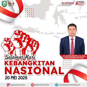 Pemerintah Kabupaten Kotawaringin Timur (Kotim) memperingati Hari Kebangkitan Nasional (Harkitnas) ke-117 dengan menggelar upacara resmi di halaman Sekretariat Daerah Kotim pada Selasa (20/05/2025). Upacara ini dipimpin oleh Penjabat Sekretaris Daerah (Pj. Sekda) Masri, S.E., CGCAE, yang sekaligus membacakan sambutan dari Menteri Komunikasi dan Digital, Meutya Viada Hafid. Dalam sambutannya, Menteri