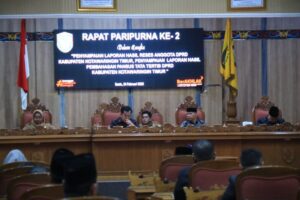Wakil Bupati Kotawaringin Timur, Irawati, turut hadir dalam acara penyampaian Laporan Hasil Reses dan Laporan Hasil Pembahasan Panitia Khusus (Pansus) DPRD Kabupaten Kotawaringin Timur, yang dilaksanakan di Ruang Rapat Paripurna DPRD setempat, Senin (24/05/2025). Acara tersebut juga mencakup penetapan Peraturan DPRD mengenai Tata Tertib DPRD Kabupaten Kotim. Hasil reses ini